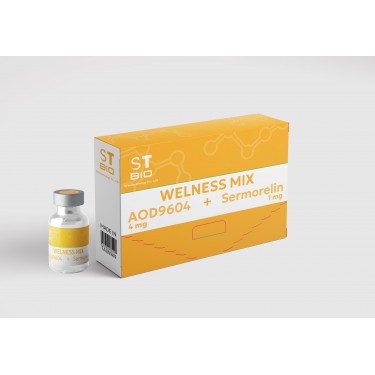 WELLNESS MIX — это уникальное сочетание двух пептидов: AOD 9604, модифицированного фрагмента гормона роста, отвечающего за регуляцию липолиза, и Sermorelin, стимулятора выработки эндогенного гормона роста (GH). В комплексе они обеспечивают гармоничное влияние на метаболизм жиров, энергообмен и процессы восстановления.